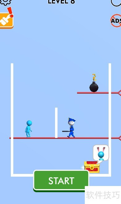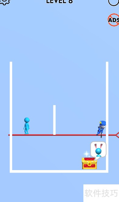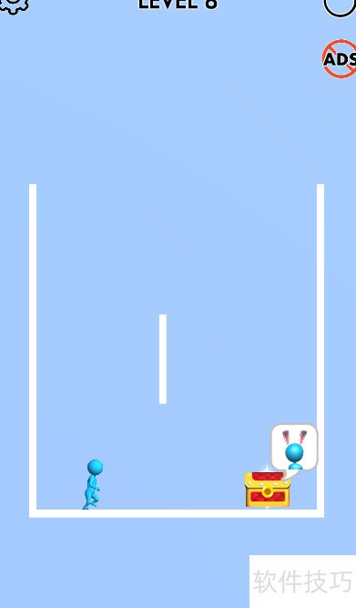 - 蓝色人物获得宝箱,显示通关画面,顺利通过关卡。