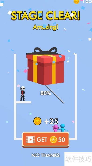 - 小粉人成功获救,礼盒弹出动画,所示,顺利通关。