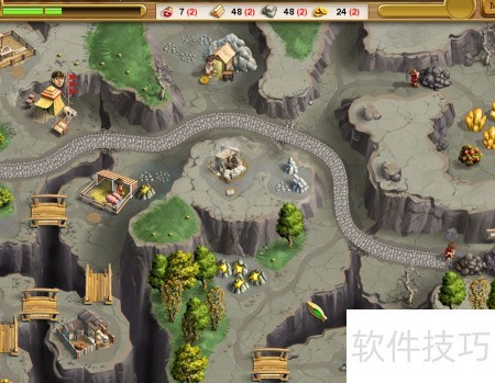 - 先让工人修复上方道路,接着修好左下方吊桥,最后清理中间道路上的石块。