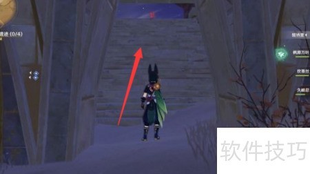 - 从侧边楼梯上行,即可抵达挑战任务所在地。