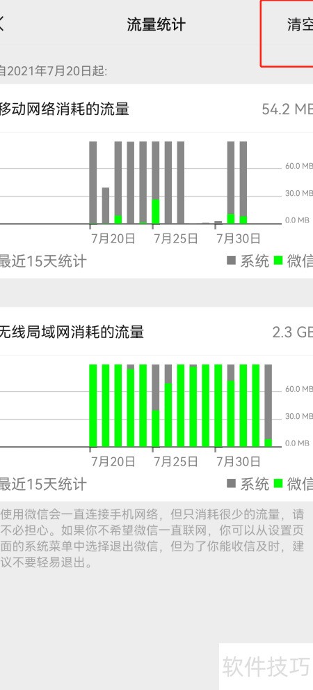 - 进入流量统计页面,点击右上角清空按钮,所示。