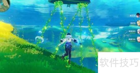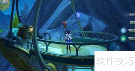 第六架飞行器登场,先用刀鳐斩断底部缠绕的水草,随即踏上这架机器。发动引擎后,飞向高空,途中可得一精妙宝箱与一枚珍贵的水神瞳。沿途注意空中闪烁的光源,将直达丽番平台,还能再获一精美的宝箱。