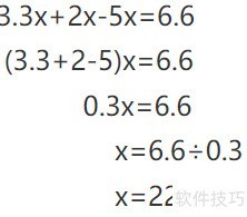首先将相同项x从左面提取出来,并合并括号内的数字后为然后应用等式性质,通过以算得出x的值。