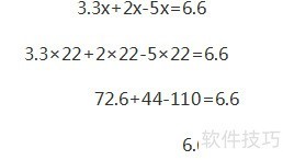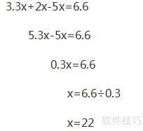 - 将x等于22代入方程3.3x加2x减5x等于6.6,可验证等式是否成立。
