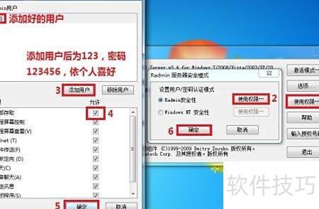 - 启动已安装的Radmin服务器,按图示步骤配置,完成被控端设置。