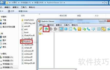 - 将程序文件复制到主控端,运行radmin,点击小电脑图标即可操作。