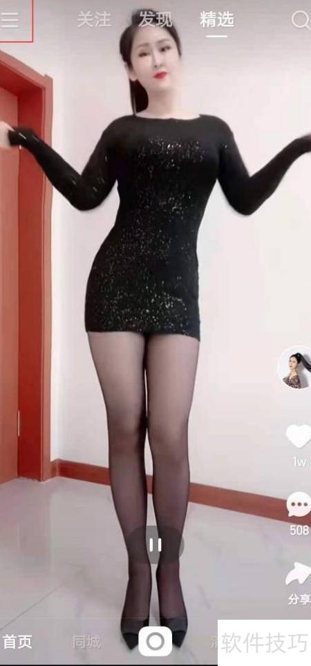 - 进入快手首页,点击主菜单选项。