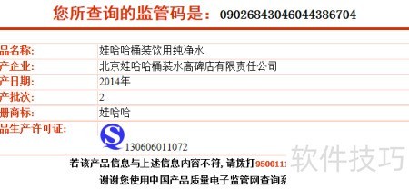 确认电子监管码与桶装水封口标签信息相符,可验证其为唯一身份标识。
