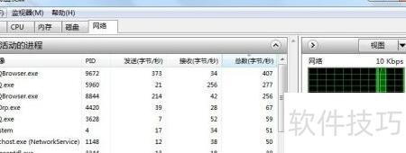 右键任务栏打开任务管理器,进入性能选项卡,点击资源监视器并切换至网络标签页。