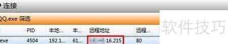 选择发送选项,使数据在列表中显示。随后发送一条给需要查询IP地址的好友的消息,观察发送列中出现的数据变化,对应的远程地址即为好友的IP地址。