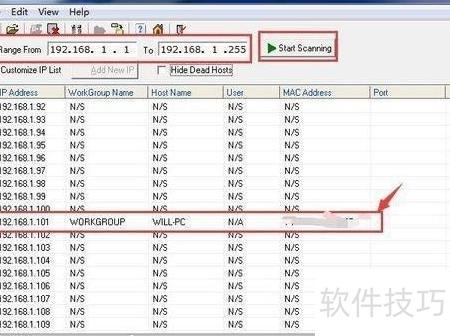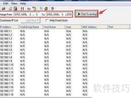 4、 所示,在IP Range的From和To栏中分别填入起始与结束IP地址,随后点击Start Scanning按钮即可开始扫描。