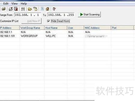 - 点击隐藏死主机可屏蔽未使用的IP地址。