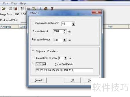 - 在选项设置中,可调整扫描时长与自动扫描间隔,并支持对预设端口进行扫描。