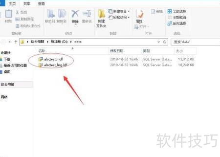 - 将abctest_log.ldf与abctest.mdf两个数据库文件共同放置于D:DATA目录中。