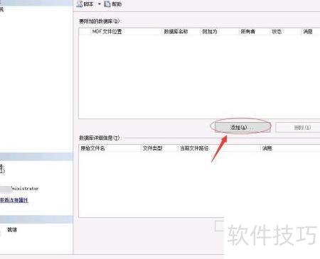 - 打开附加数据库窗口,点击要附加的数据库下方的添加按钮。