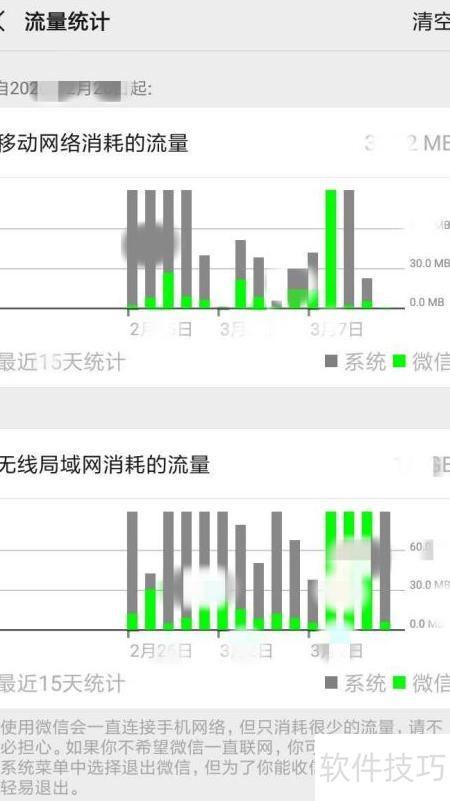 - 开启流量统计功能后,王段可随时查看微信流量使用详情。