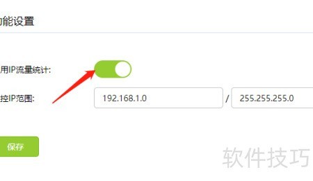 - 进入设置并开启IP流量统计功能。