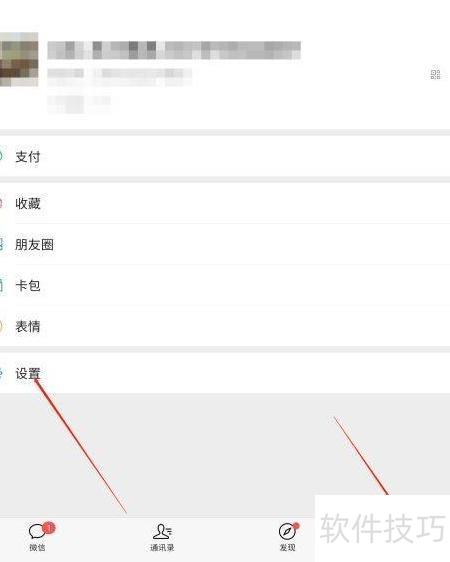 - 打开微信,进入我页面,点击设置选项。
