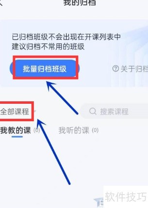 - 选中课程后点击批量归档即可完成操作。