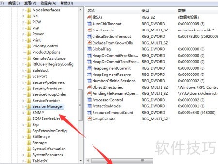 - 进入Session Manager,查找并进入BootExecute进行编辑。