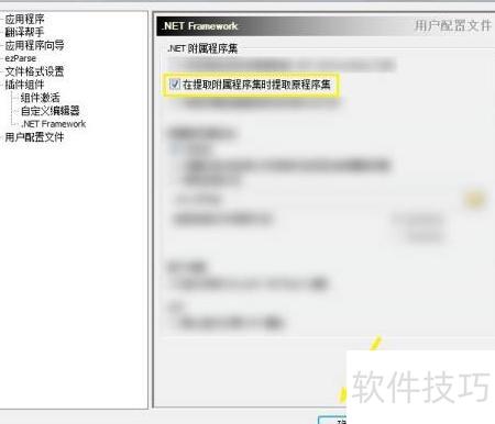 - 在用户配置文件界面中,启用提取附属程序集时同时提取原程序集的选项。