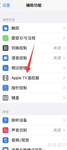 - 在辅助功能中开启Apple TV遥控器选项