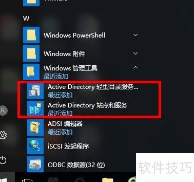 - 在开始菜单的最近添加的管理工具中,定位到Active Directory轻型目录服务即可完成操作。