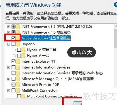 - 在功能列表中选择Active Directory轻型目录服务,确认后点击确定。