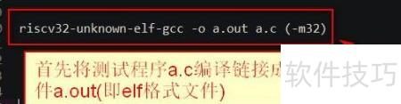 - 先将测试程序a.c编译并链接为可执行的ELF格式文件a.out。