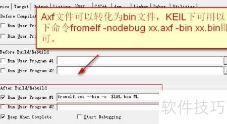 - 将ELF文件转为BIN,再将BIN文件转换为HEX格式的指令操作。