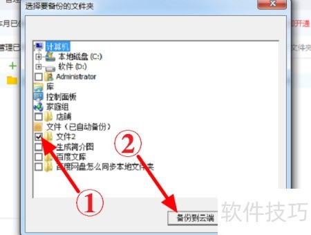 - 在文件夹选择界面,选中目标文件夹后点击备份到云端即可。