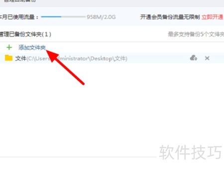 - 进入自动备份页面,点击添加文件夹按钮。