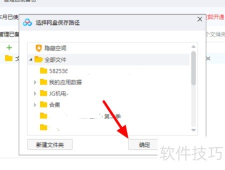 在百度网盘路径选中,确定位置或使用默认,点击“确认”。登录后文件即同步刷新。