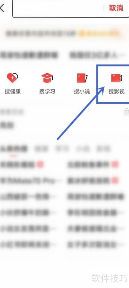 - 打开搜索页面,点击顶部搜影视按钮,输入电影名进行查找。