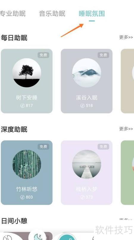 - 进入睡眠页面后,挑选你喜欢的睡眠氛围。