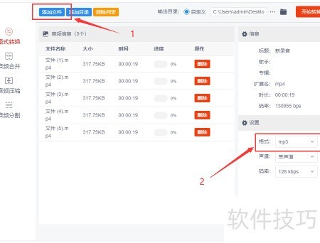 点击左上角的按钮,导入需要转换的AAC音频文件,支持批量操作。在格式选项右侧的下拉菜单中选择MP设置完成后即可进行批量格式转换,操作简便高效。