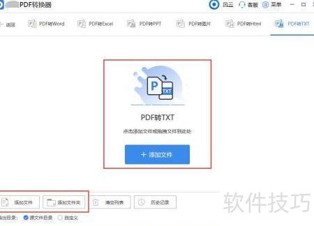 选择PDF转TXT功能后,只需点击添加文件或直接拖拽PDF文件到软件中。对于文件量较大的情况,可以利用添加文件夹功能,批量导入多个PDF文件,便于整体处理。