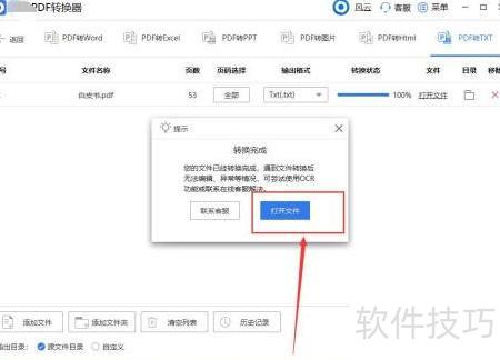 - PDF转TXT完成后,可直接点击打开文件,查看已转换的文本内容。