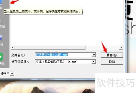 在菜单栏选择“文件”,点击“另存为”,选择“文本”,在弹出的对话框中指定保存位置,最后点击“保存”,将文件存储为txt格式。