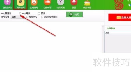 - 启动软件后,点击顶部的图片转写功能,即可进入相应的操作页面。
