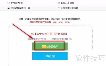 - 在图片转写页面,点击选择文件按钮,即可上传图片并进入下一步操作。
