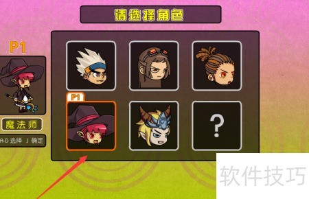 - 连续按三次D键选择魔法师角色,再按J键确认。