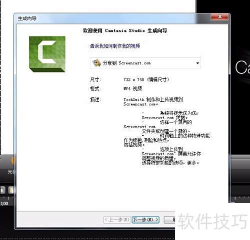 - 生成按钮可直接打开camtasia studio中的生成向导界面,便于快速导出视频内容。