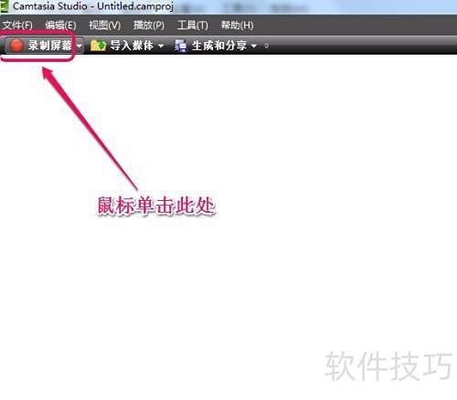 - 进入Camtasia Studio界面后,点击左上角的录制屏幕功能按钮开始操作。