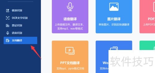 - 进入语音翻译页面后,点击其中的文档翻译功能即可。