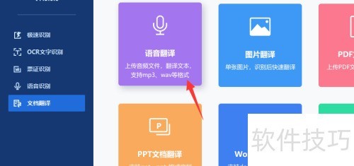 3、 在文档翻译页面,提供多种翻译选项,我们需选取其中的语音翻译功能以满足特定需求。