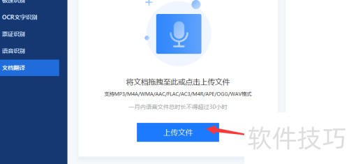 进入语音翻译页面,点击上传文件快速添加,文件在几秒钟内自动处理完毕。