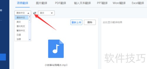 在上传图片之后,不要急于翻译音频文件。首先需要进行适当的源语言与目标语言转换设置,该功能位于页面左侧上方,可根据具体情况自由选择目标语言,以保证翻译结果的准确性并适应您的应用场景。