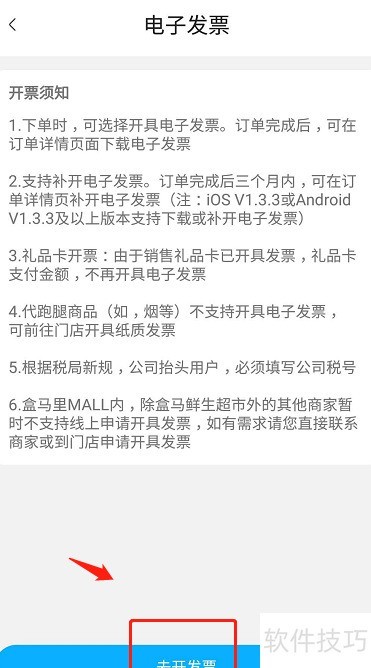 - 进入电子发票页面后,点击去开发票,开票前请仔细阅读相关须知。