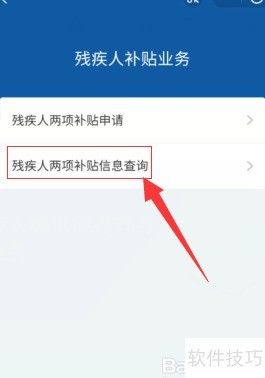 - 点击残疾人两项补贴信息查询选项,操作所示。